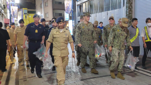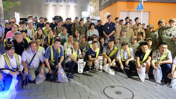 このパトロールは1994年から続いており、今回で通算321回目。地元町内会が主催し、米国海軍、海上自衛隊、横須賀警察署などと共に、横須賀基地周辺の夜の繁華街で声かけや道路の清掃を行っています。