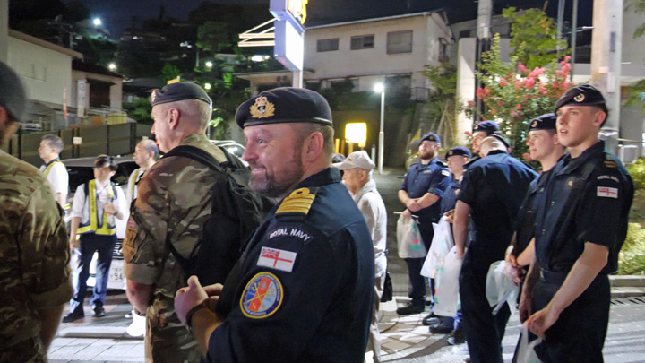 英空母「プリンス・オブ・ウェールズ」の乗組員などが、横須賀基地周辺の巡回パトロールに参加